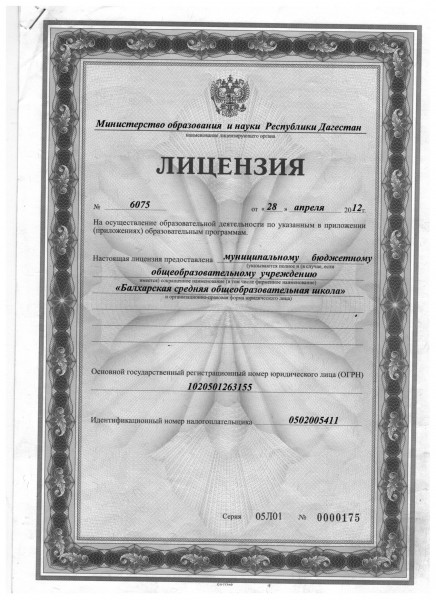 | Полное наименование образовательной организации* | Муниципальное казенное общеобразовательное учреждение "Балхарская средняя общеобразовательная школа" |